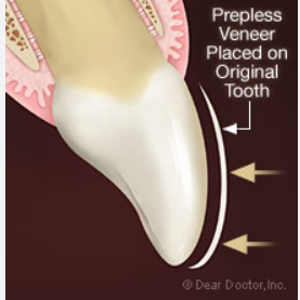 They’re often called “no-prep” veneers. They are more fine & translucent than veneers. Tooth trimming or drilling is not needed. Not recommended in heavily stained teeth.